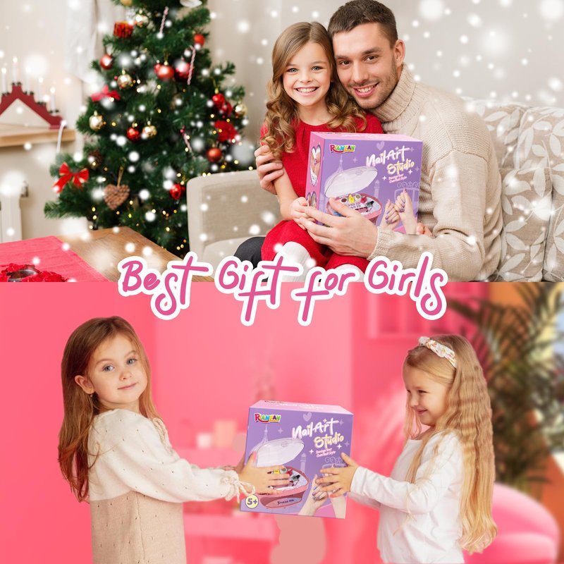- Easy to store box: This nail art studio for girls comes with a cute container, the bottom half of it is the dryer part. Children can put all nail art supplies neatly in the corresponding position when using girls nail kit . Our kids nail kit can help kids develop good storage habits. Don’t worry about the nail polish kit accessories scattering around the home so that they can not find it. If your daughter recieves this cute girl stuff, she will be over the moon about it.