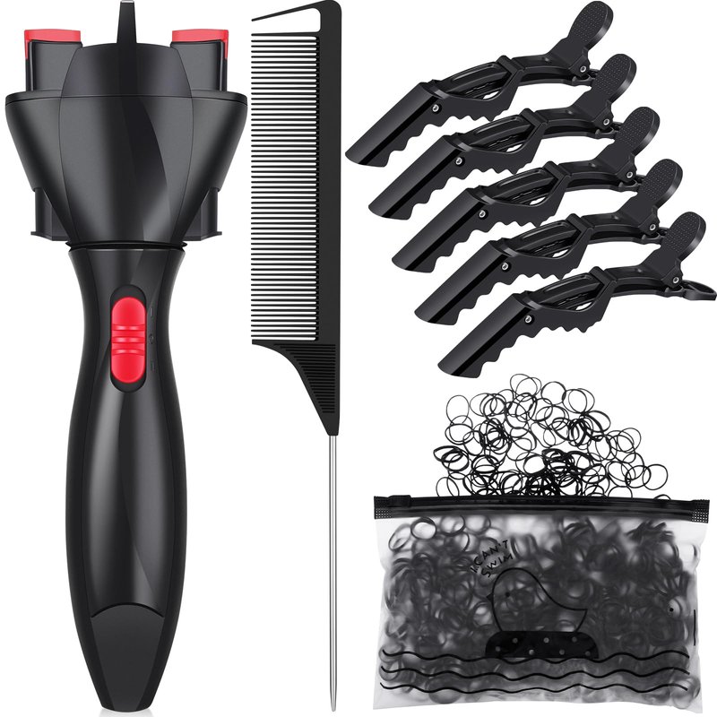 - Included in the Set: you will receive 1 piece of automatic hair braiding tool (Note: powered by 2 AA batteries, without batteries), 1 black steel rat tail comb, 5 crocodile hair clips, 800 black mini rubber bands, a practical combination of sets, so you can easily create beautiful braided hairstyles