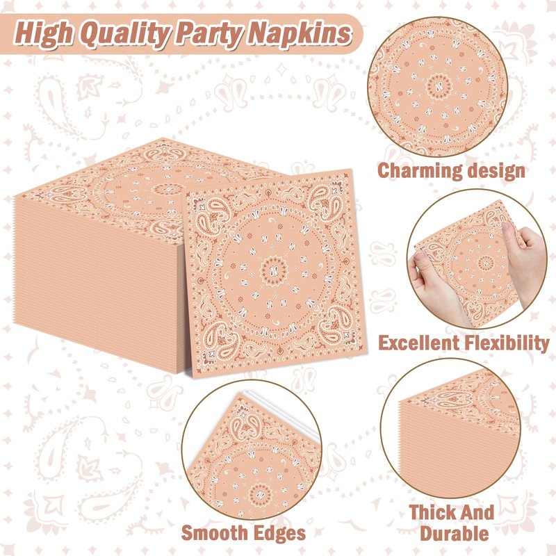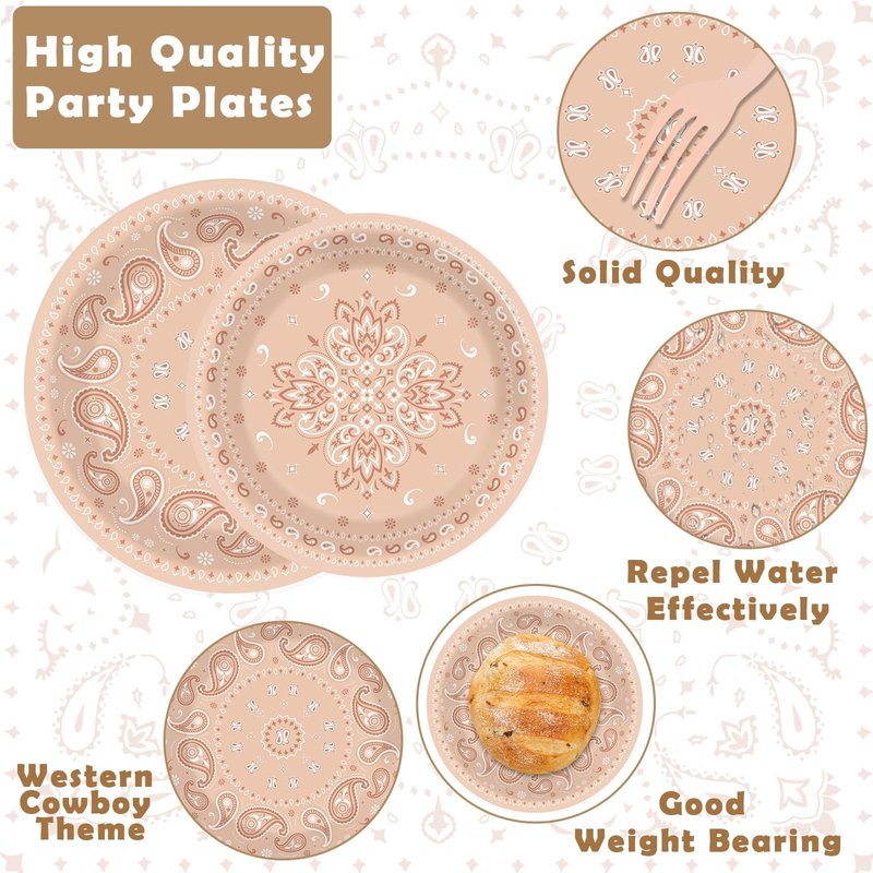 - Versatile use: Ideal for various occasions, including western cowboy parties, farm-themed parties, wild west cowgirl decor, cowboy birthday party, cactus party decorations, rodeo baby shower decor, and western party supplies, these paisley print plates and napkins set also can complement other western party decor such as tablecloths, banners, and party bags seamlessly.