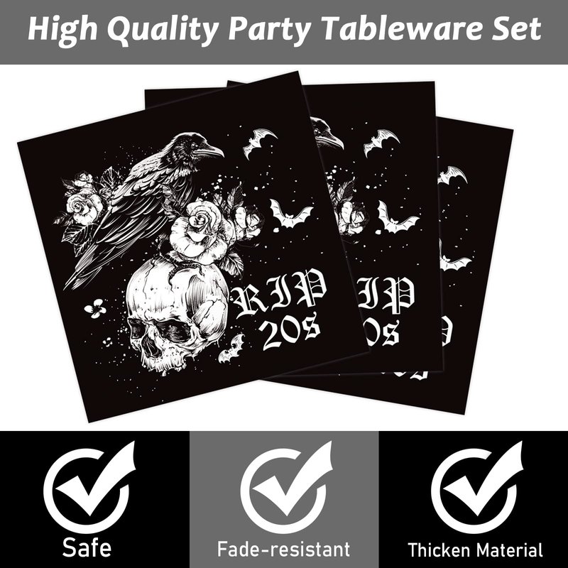 - 【High-Quality】Death to my twenties party tableware are made from food-grade cardboard, thickened and sturdy, can hold up well with any kinds of food. The napkins are soft and non-smell. Death To my 20s supplies are designed in skull, make the whole supplies set looks more elegant.