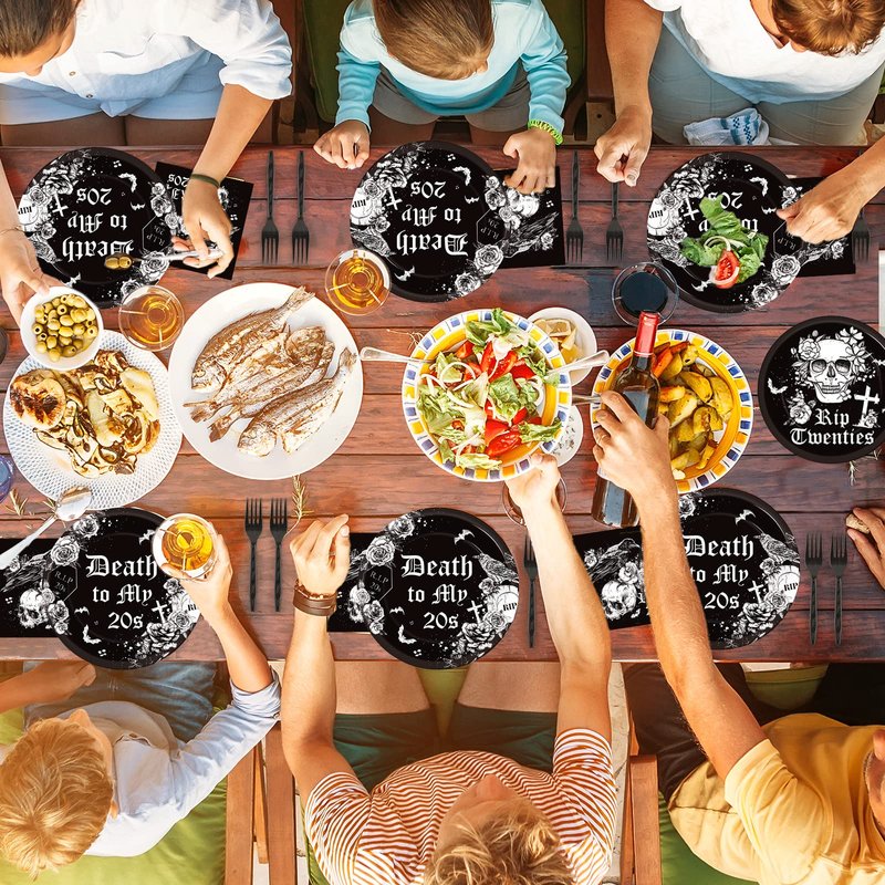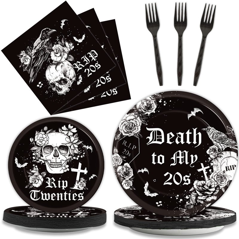 - 【Serves 24 Guests】Death to my twenties party supplies Included: 24pcs 9" Dinner plates, 24pcs 7" Dessert Plates, 24pcs paper Napkins, 24pcs forks that can serve 24 guests, enough quantity for a different and unique Party!