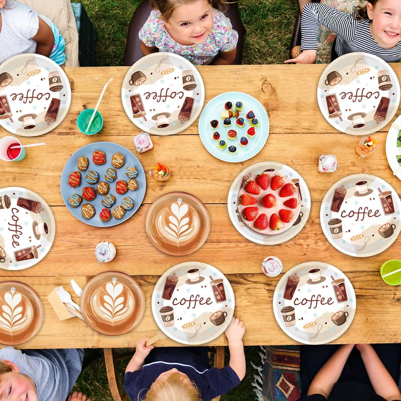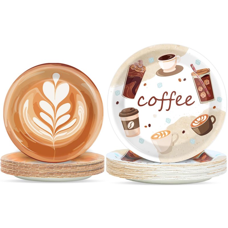 - Package Contain: This pack comes with 24 pieces of coffee party paper dinner plates of 9inch, 24 pieces latte coffee theme paper dessert plates of 7inch, which can serve 48 guests. The coffee birthday party tableware are enough to decorate your coffee theme party.