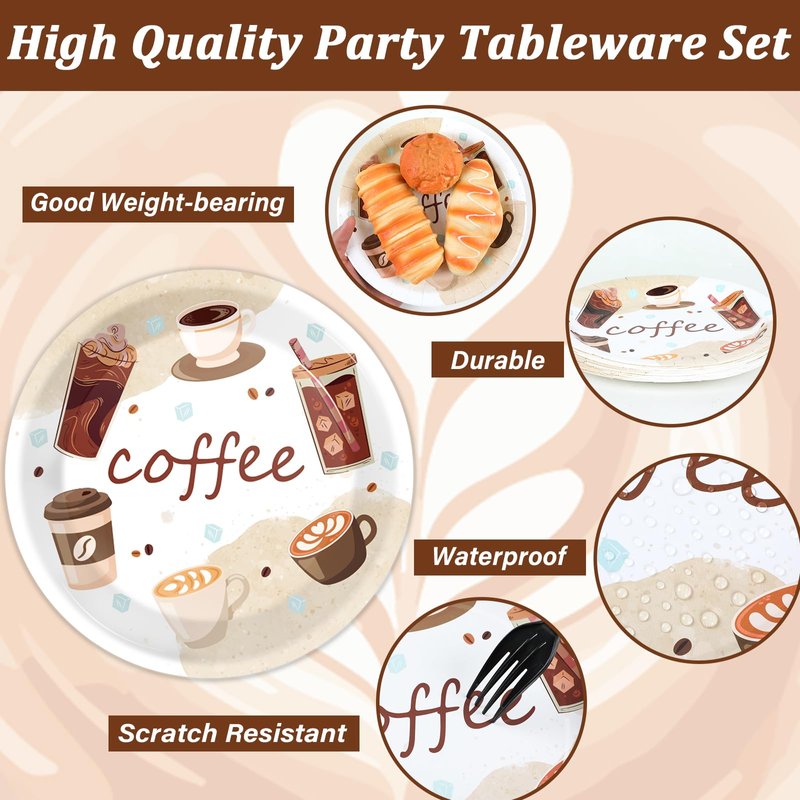 - latte Coffee Party Table Settings: These coffee lovers party decorations are eye-catching and practical, they can be applied to coffee mornings, brunches, birthday parties, afternoon tea parties, baby showers, coffee shop, restaurant, also used as a gift for coffee lovers.