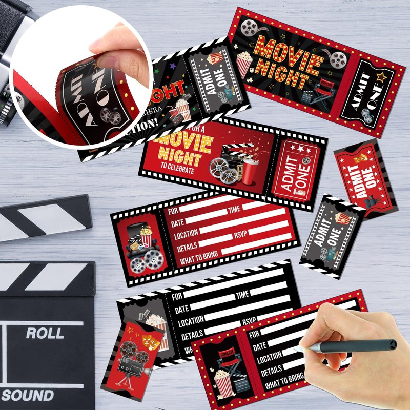 - High-quality material: These movie theater party invitations are made of thick card paper, durable and reusable, easy for you to fill in with pens, pencils, markers, and even crayons, their colors won't fade easily, keeping their glossy for a long time. The movie party invitation card also features perforated line design for easy tearing, ensuring a smooth process.