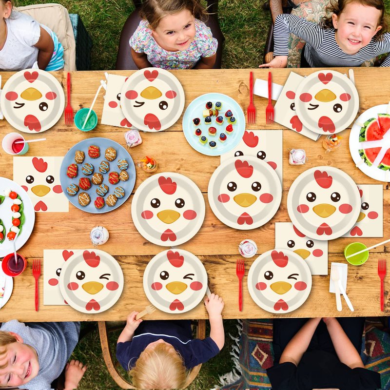 - 【Enjoy Party And Save Time】You will be able to throw a chicken themed party that impresses your guests the entire night. When the party is over, you can spend more time with family or friends and less time cleaning up. That's why we designed this chicken party tableware set.