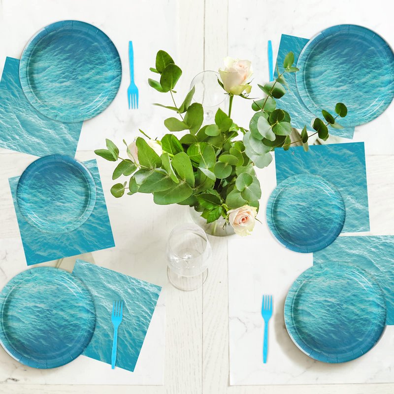 Ocean Sea Party Ocean Waves Party Supplies Table Decorations Supplies Sea Theme Birthday Table Decorations for Birthday Party Plates Paper Plates Napkins Forks