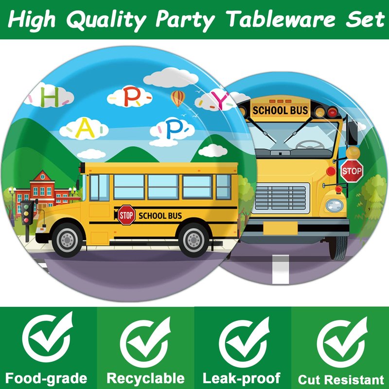 - 【Back to School Design】Except for the fork, this school bus party tableware set is all designed in new patterns. Decorating your party with these tableware kit can make your party full of the festival atmosphere.