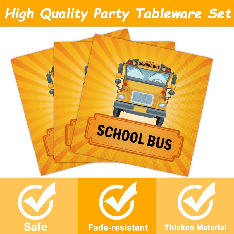 - 【Premium Material】All of our school bus plates and napkins are made of quality paper, non-toxic, no smell, heat-resistant and durable. The pattern and color are well-printed and fade-resistant to provide you with a party that full of school bus theme atmosphere.