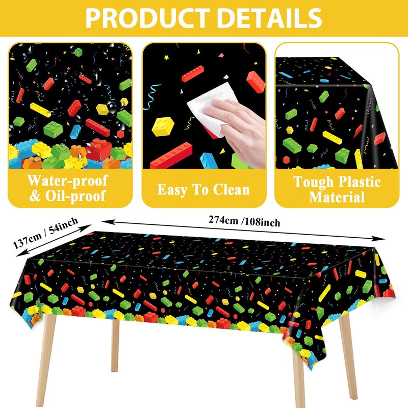 - Ideal building blocks party supplement: Our simple, colorful blocks-themed party tableware and building blocks party tablecloths are ideal complements to your birthday party decorations. They pair seamlessly with other building blocks party decorations such as baby shower banners, colorful blocks party bags, and building blocks birthday party backdrops.