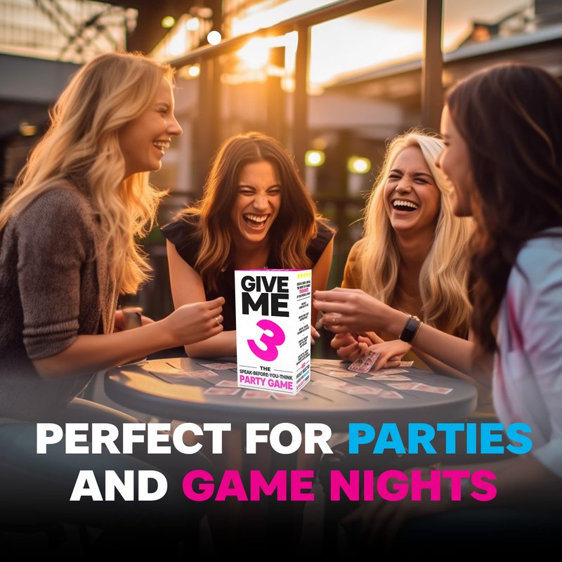 - π PERFECT FOR ANY SOCIAL GATHERING - GIVE ME 3 IS THE ULTIMATE PARTY GAME! Whether it's a party, game night, birthday, or casual evening, this icebreaker game brings people together for hours of entertainment