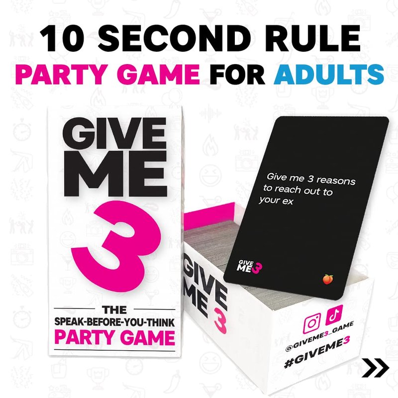 GIVE ME 3 - Fast Paced and Hilarious 10 Second Rule Adult Party Games | 2+ Players | Card Game for Adults | Travel Game | Board Game for Parties and Game Nights