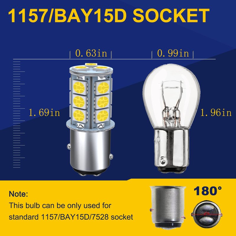 - 【Fitment】 The 1157 LED Car bulbs are compatible with BAY15d 7528 2057 2357 3496 1157A 1016 1034 1152 1154 1158 1493 2057 2357 7528 12499 12594 P21/5W sockets.