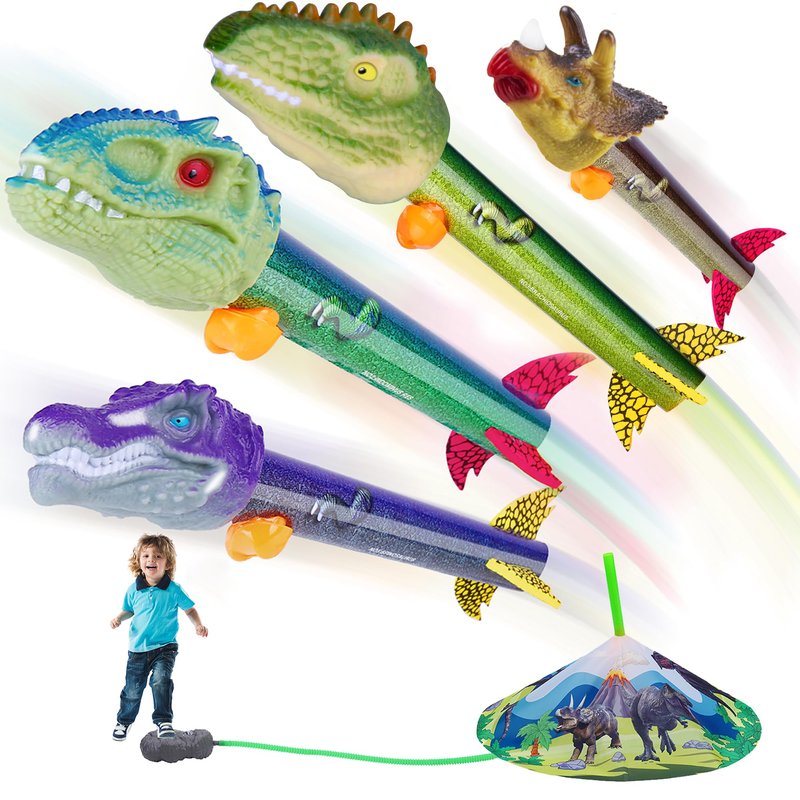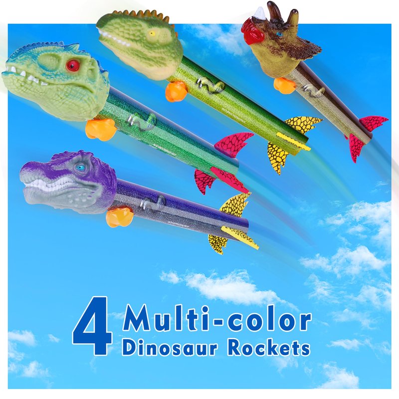 - Toy Rocket Launcher for Kids: This rocket launcher set includes 4 foam multi-color dino rockets, 1 step pad, 1 launch stand with an adjustable launch tube. Kids can have hours of fun just by running, jumping and stepping. Very suitable for boys age 3+