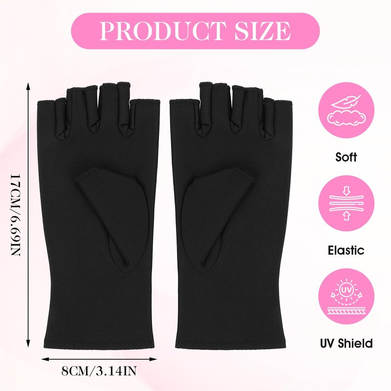 - 【Fingerless Design】The shield glove adopted a fingerless design, giving you complete control and freedom of movement when applying gel polish, curing under a lamp, or shaping your nails. The fingerless style ensures optimal visibility and precision, allowing you to create a perfect salon-quality manicure every time.