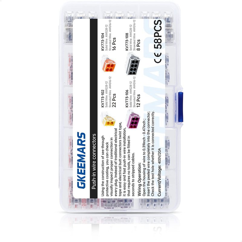 GKEEMARS 58 Pcs Push-in Wire Connector 773 2/4/ 6/8 Port Conductor Assortment Pack for Junction Box