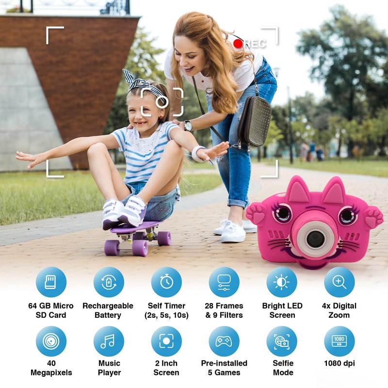 - MAKE MEMORIES, MAKE MAGIC: Help your kid capture the fun of being a kid and make memories that will stay with them forever. From goofy selfies to spontaneous snaps, every photo is a work of art. Plus, with the included 64GB Micro SD Card, our kids' camera provides ample space to capture more memories, ensuring every special moment is preserved for years to come.