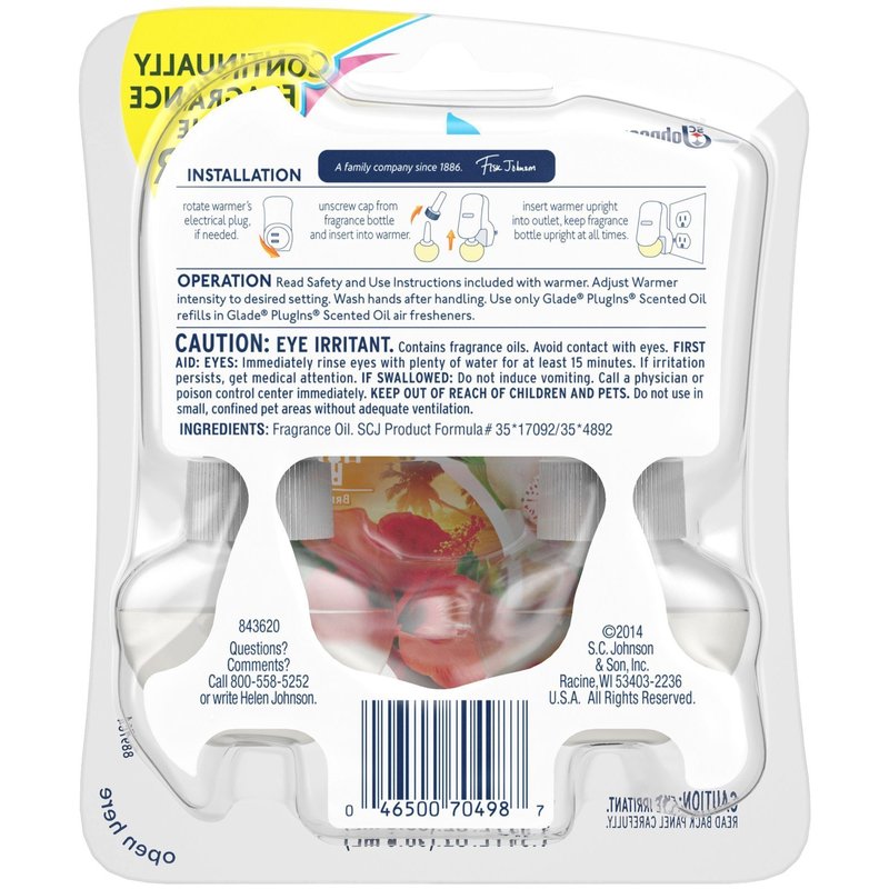 A Closer Look: Glade Plugins Scented Oil Refill is a dual fragrant refill that's made to easily fit to the unit and release fragrance after regular time intervals to create a pleasing atmosphere. You can adjust the fragrance setting on the scented oil warmer according to your liking.