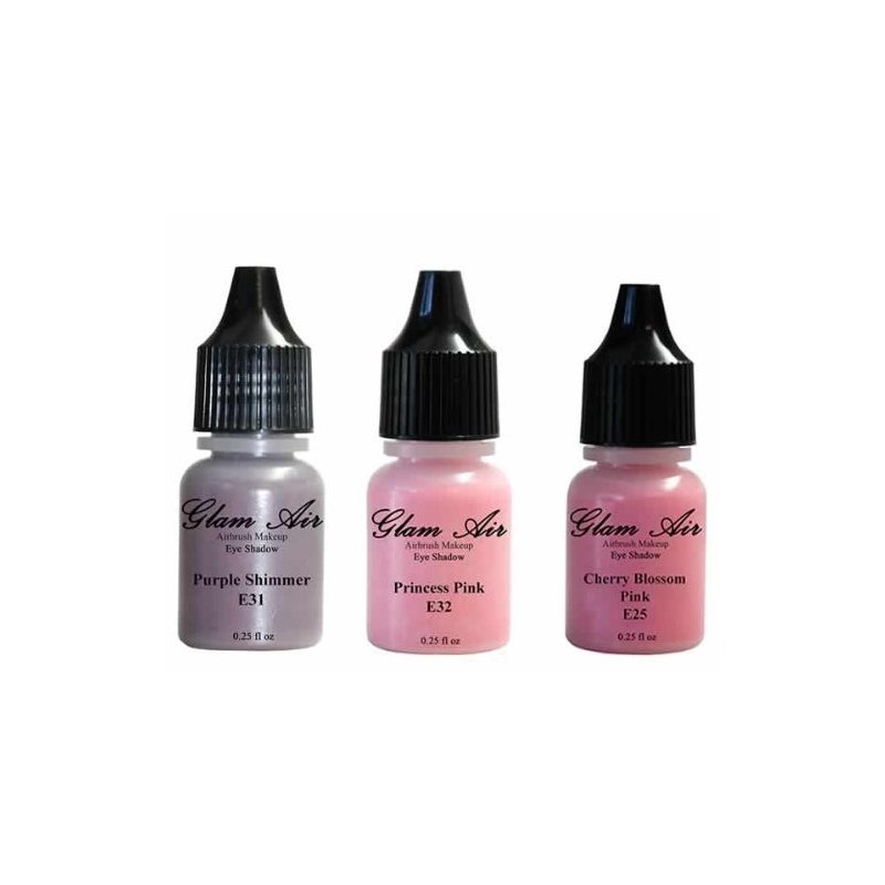 Glam Air Set of 3 Airbrush Eye Shadow Colors- Cherry Blossom, Purple Shimmer and Princess Pink Airbrush Water-based 0.25 Fl. Oz. Bottles of Eyeshadow by Glamair