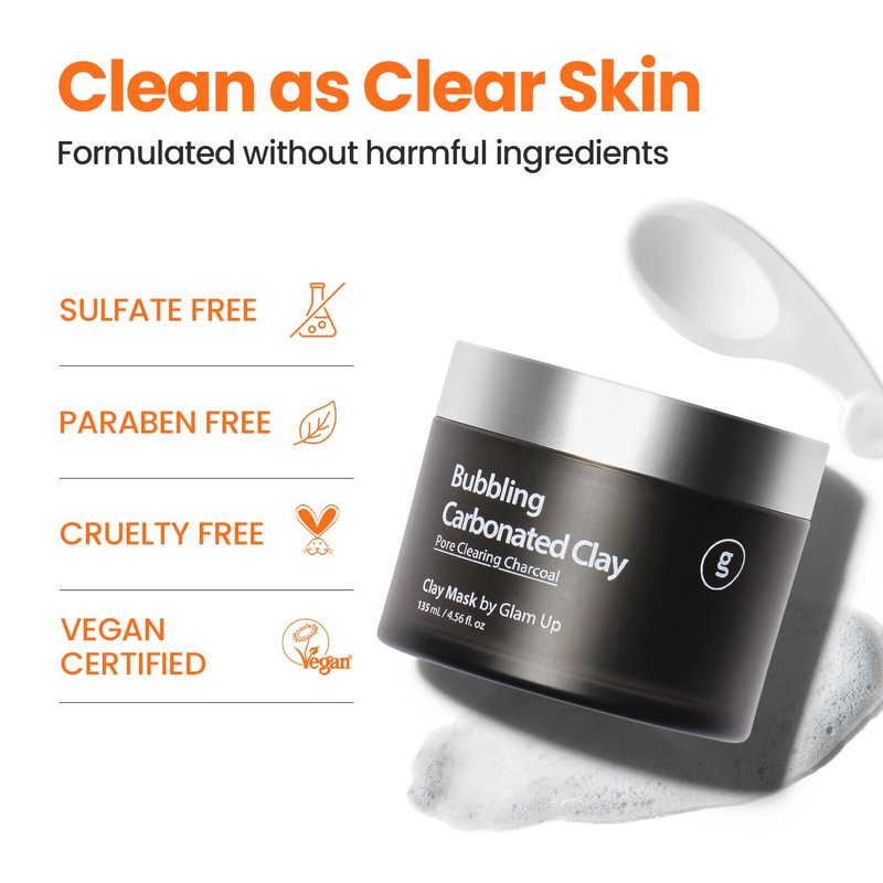 - 😊NON-STRIPPING CLAY MASK FOR FACE: Glam Up's Bubbling Carbonated Clay Mask helps to reveal healthy and flawless skin without drying or clay cracking. It is suitable for all skin types including normal, dry, oily, and combination.