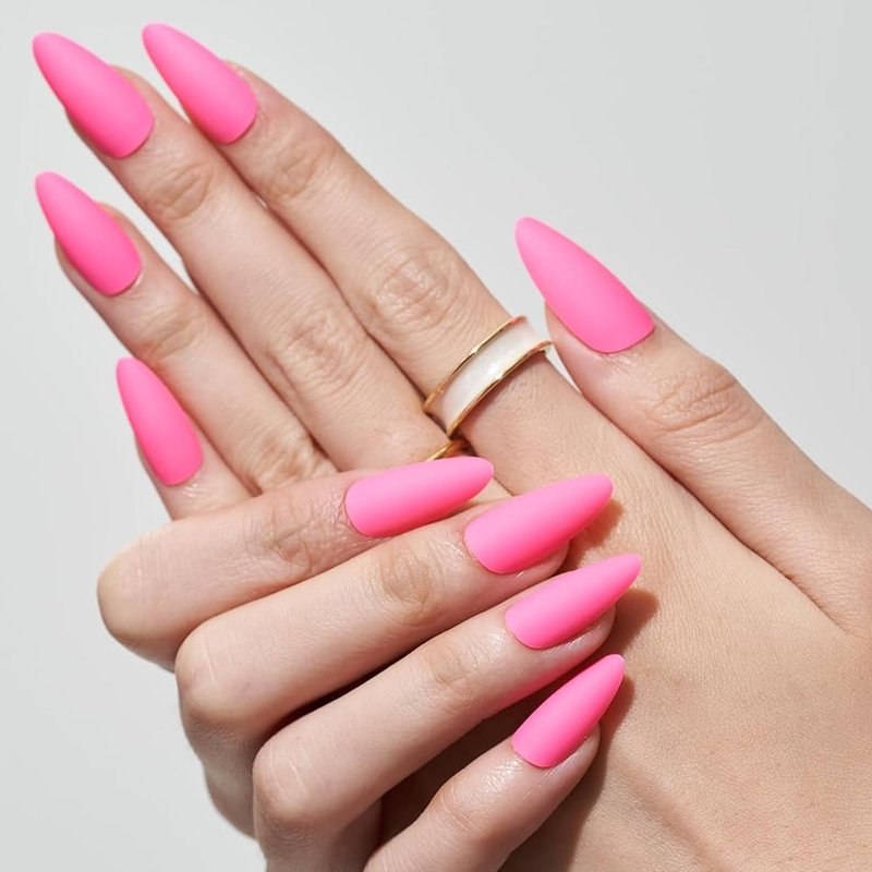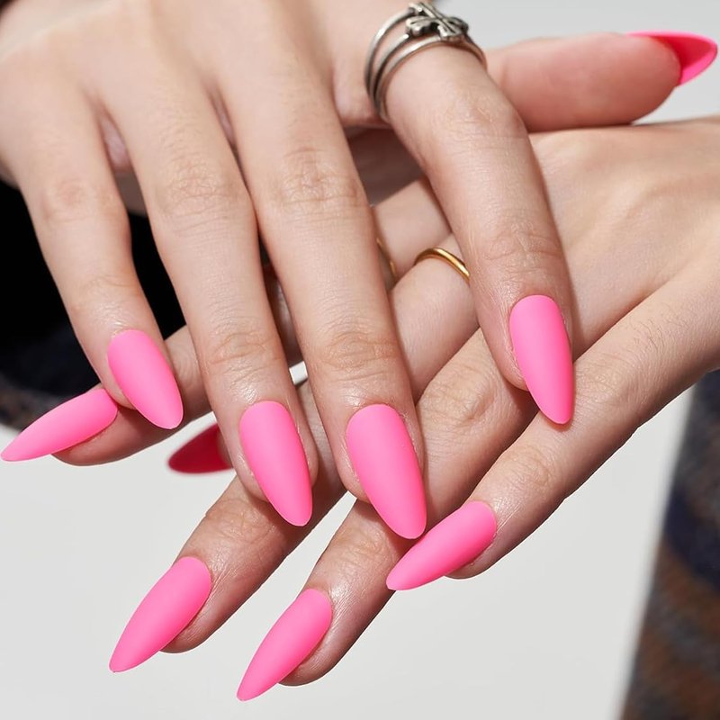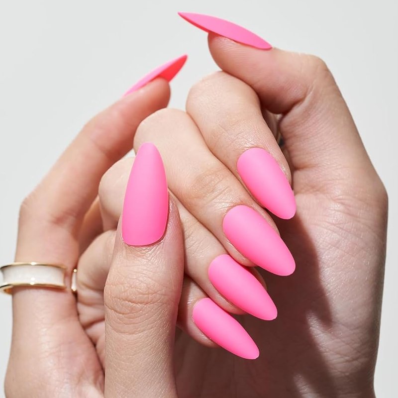 GLAMERMAID Matte Pink Press on Nails Medium Almond, Natural Dull Polish Nails Pure Stiletto Fake Nails with Design, Short Oval Stick Glue on Nails Tips for Women, Reusable Acrylic Daily False Nail Kit
