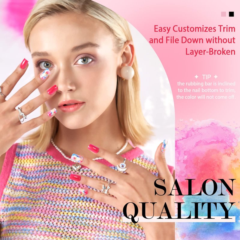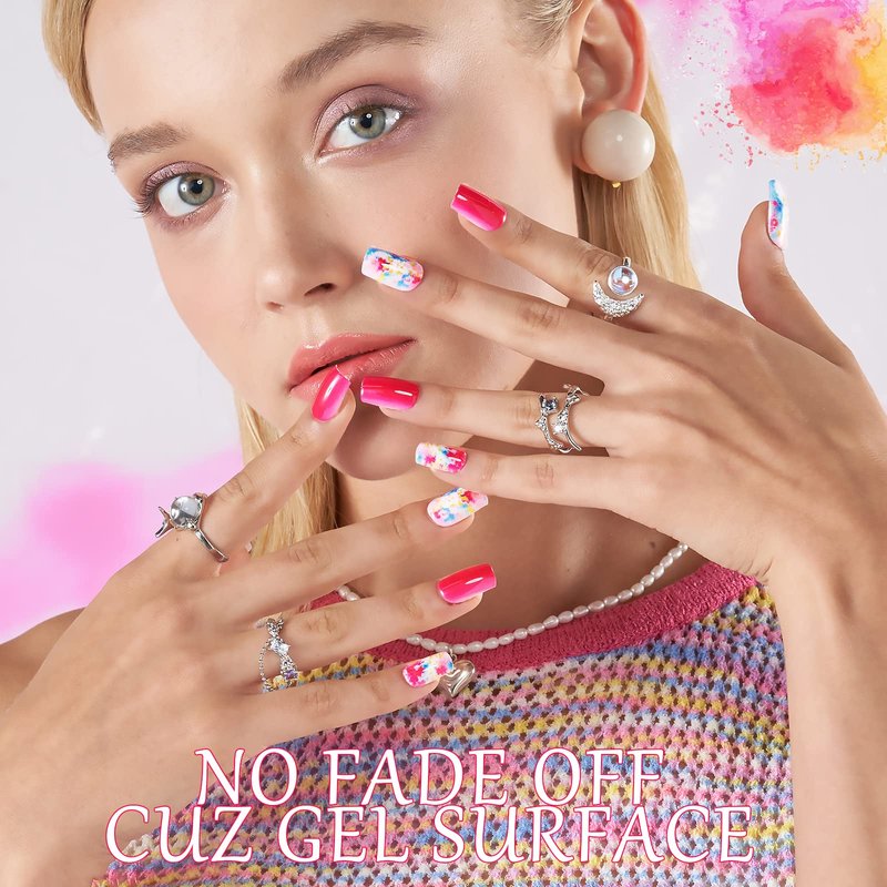 • An Amazing Gel Finish:1.Double structured design: more thicker on the fingertip for super durable and never splitting; thinner at the cuticle for a seamless look and natural looking fit. 2.Manual brush gel treatment on nail surface, achieving real gel shine, polish free, never fade