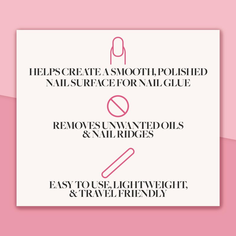 - Professional Quality Nail File & Buffer: An all-in-one tool to help file, shape, smooth and polished natural nails prior to press-on nail application or in between press-on manicures. Create a healthy sheen with 7 sides to guide you through each step - simply shape, even out and shine with this all-in-one, easy-to-use buffing block.