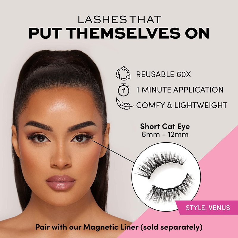 Glamnetic Magnetic Eyelashes - Venus | Short Magnetic Lashes, 60 Wears Reusable High Volume Faux Mink Lashes, Cat Eye, 3D Natural Look - 1 Pair