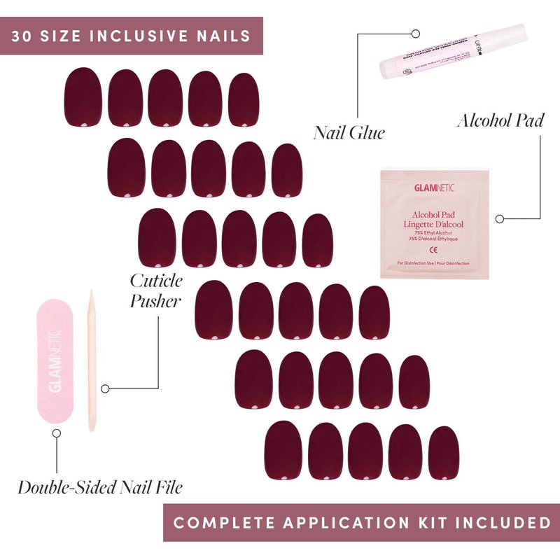 Glamnetic Press On Nails - Berry Maroon | Opaque Dark Red Maroon Short Round False Nails, Reusable Stick On Fake Nails with Glue | Salon Quality | 12 Sizes - 30 Nail Kit
