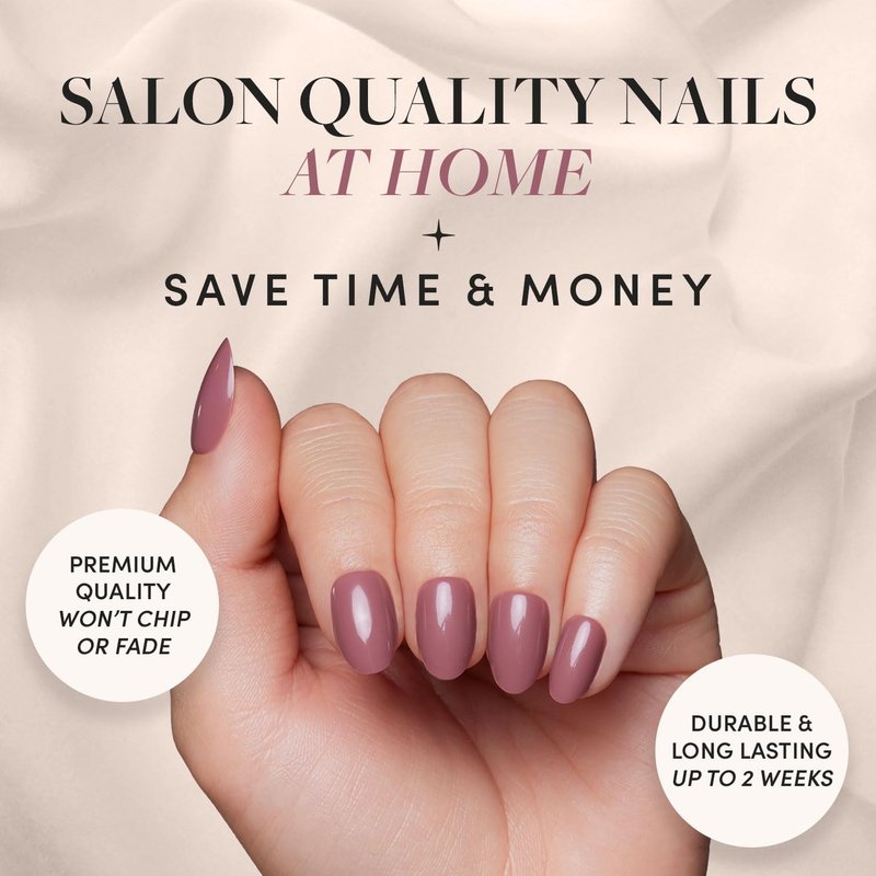- Color: Glamnetic Press On Nails - Fall Mauve | Opaque Muted Blush Mauve Short Oval False Nails, Reusable Stick On Fake Nails with Glue | Salon Quality | 15 Sizes - 30 Nail Kit