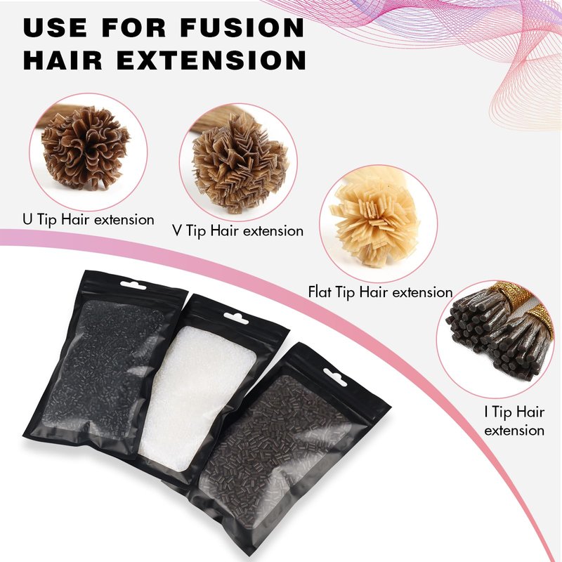 - Keratin Glue: One bag of 100g hair extension keratin glue beads, can be applied with fusion iron connector, hair extension iron, pre-bonding hair, good for hair extension or nail extension, can help to form a secure bond.