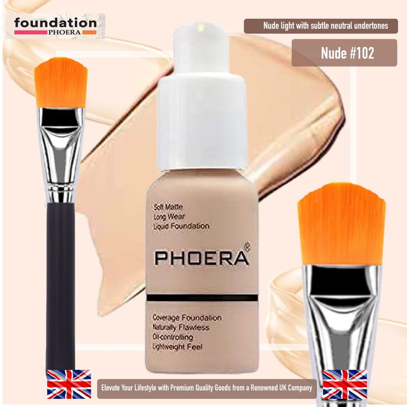 -Customized coverage: Shade 102 (Nude) in this foundation makeup kit suits various skin tones, ensuring a perfect match. Bid farewell to a mismatched foundation. With a high-quality brush, achieve flawless coverage tailored to your unique complexion.