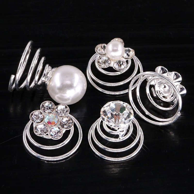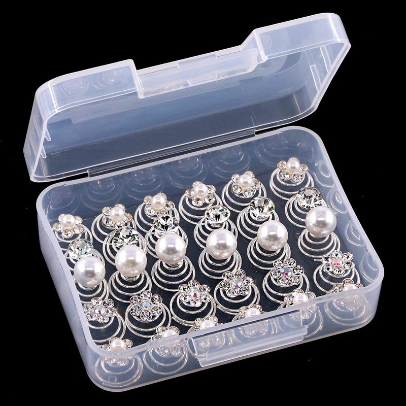 - ❉ What You Get: Come with a exquisite plastic box, it contains 5 different style spiral hair pins, with diamonds, crystals, pearls, petals are set on them, each style with 6pcs, total 30pcs.