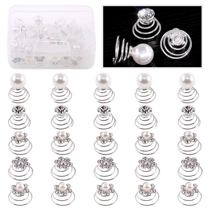 Glarks 30Pcs Spiral Hair Pins Swirl Hair Twists Coils Hair Clip Accessories with Crystal or Pearl for Gift, Wedding, Bridal, Prom, Party, and Special Event