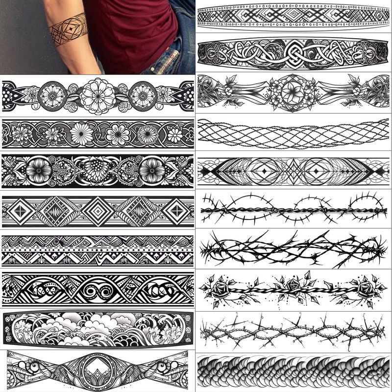 - π[PRODUCT EXPECTATIONS] The GLARYYEARS 18 pack of arm band temporary tattoos comes with 18 different sheets size of 2,4in x 11in (6cm x 28cm).