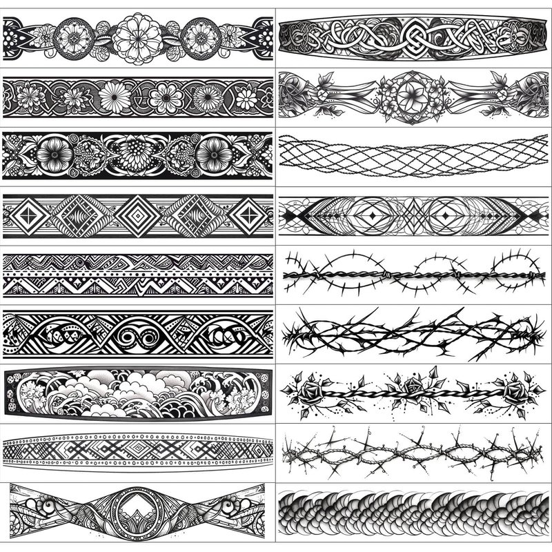 GLARYYEARS Arm Band Temporary Tattoo - 18 Pack Super Long size, Realistic & Boho Polynesian Maori Style Fake Tattoos, ArmBand Tattoos for Wrist, Ankle Circle, Barbed Wire, Tribal and Totem