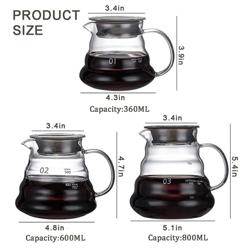 - 【HIGH QUALITY COFFEE SERVER】This glass coffee pot is compatible with glass coffee dripper, stainless steel dripper and ceramic dripper, easy to use, let you enjoy coffee easily every day.