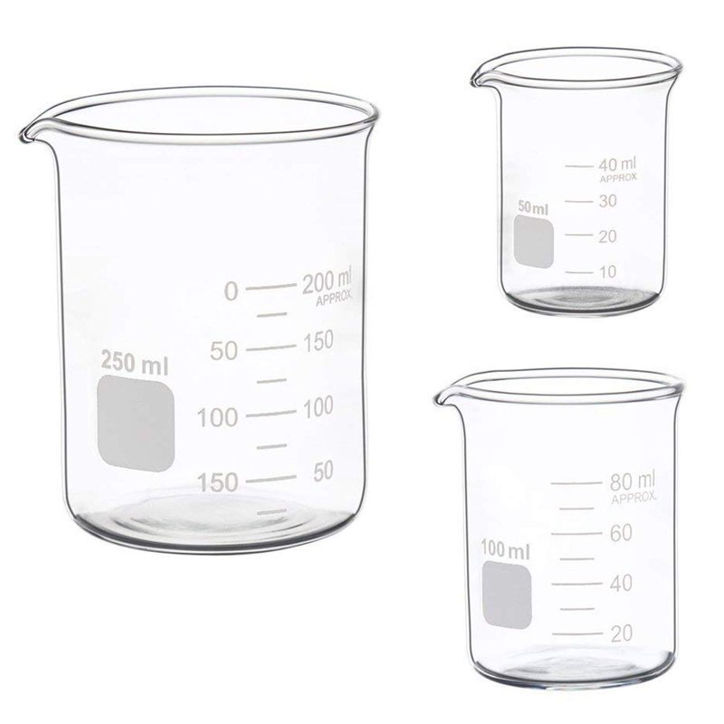Glass Measuring Low Form Beaker Set 50ml 100ml 250ml Glass Graduated Beaker Set …