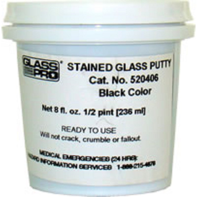 GlassPro Putty, 1/2 pint, Black Designed for stregthening and waterproofing leaded glass panels. Cleans up easily with whiting. Ready-to-use oil-based elastic compound, easily applied, adheres to came and glass. Remains permanently elastic.