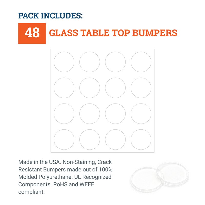 - Package Includes 48 Glass Table Top Bumpers and 3 Alcohol Prep Pads to clean the surface.
