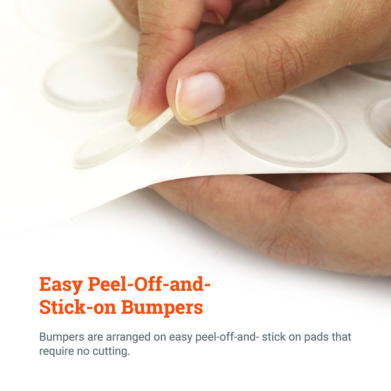 - Clear Rubber Bumpers Self Adhesive: Easy peel off and stick on pads require no cutting. Aggressive quick stick synthetic rubber adhesive.