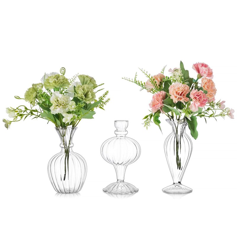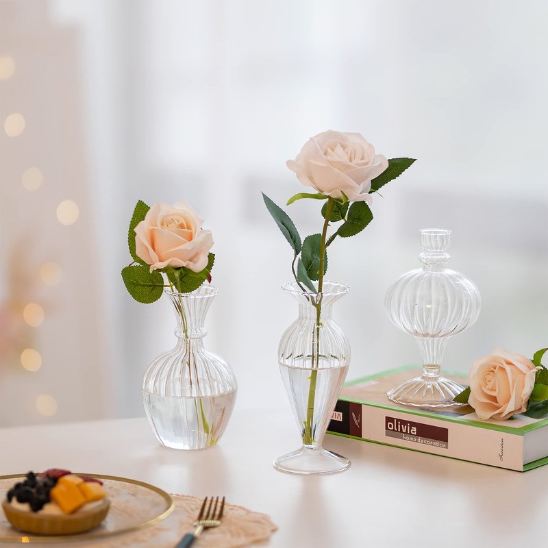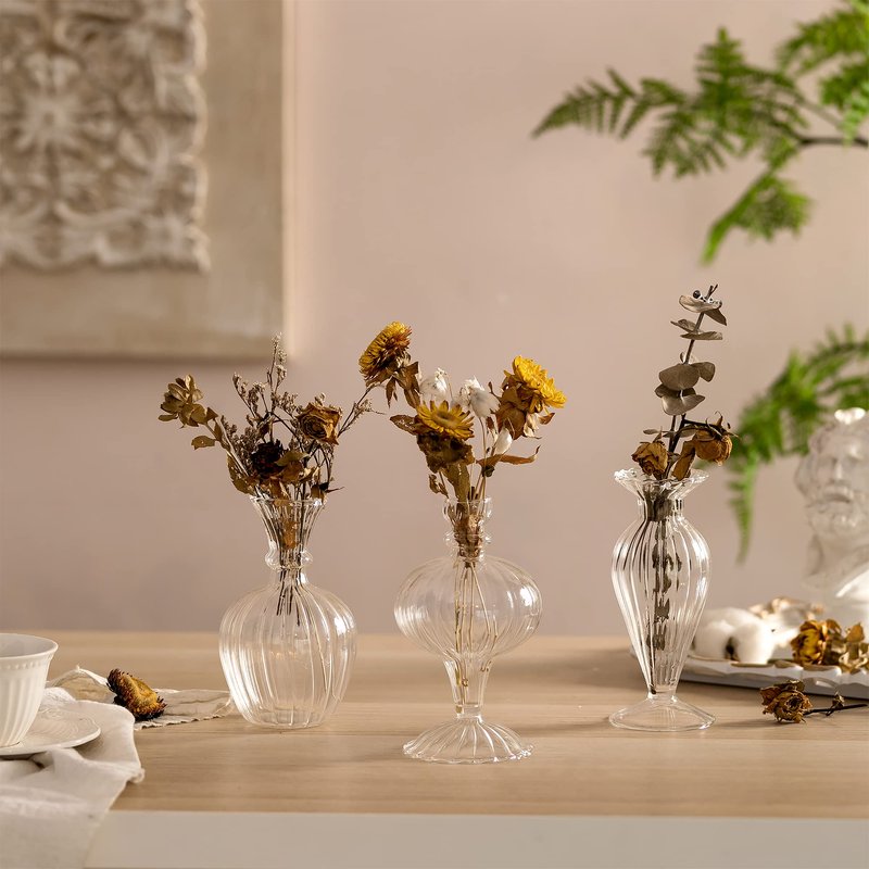 - Premium Bud Vases in Bulk: Made of qualified high borosilicate glass, these textured small vases for flowers have smooth opening and scratch resistant surface. Compared with the most ordinary clear glass vase, they have higher transparency and more stylish shapes even though they are not as thick as the ordinary glass.