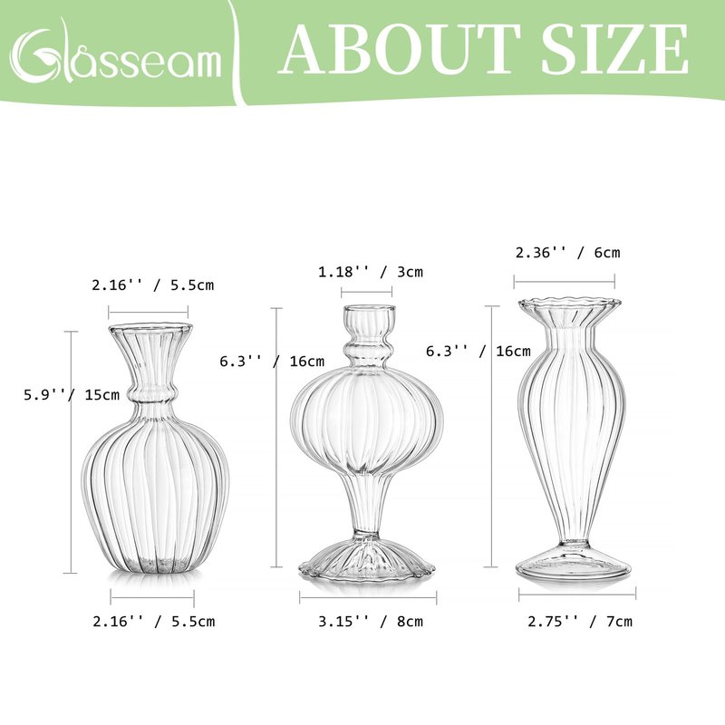 - Glasseam Vase for Your Satisfaction: Engaged in glassware for years, Glasseam aims to provide you with a unique vase in perfect condition with customized packaging. Please tell us if you are unsatisfied with the item for any reason. We are always listening, and will provide the best and the most professional customer service for you.