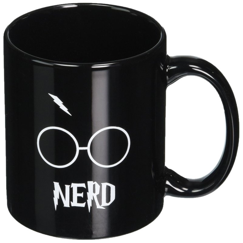 Glasses and Lightning Bolt Nerd Book Nerdy 12 oz Ceramic Coffee Mug (Black)