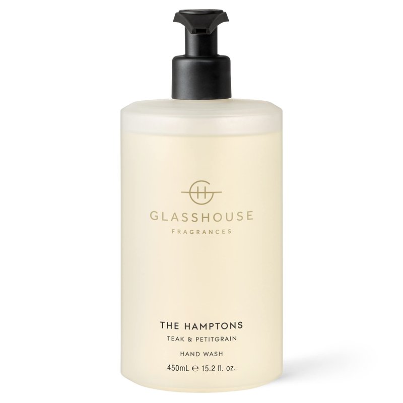 Glasshouse Fragrances The Hamptons Hand Wash, Rich in Aloe Vera & Vitamin E, Soothing & Moisturizing, Teak & Petitgrain Scent, 15.2 Fl Oz (450mL)