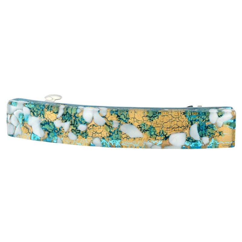 GlassOfVenice Murano Glass Venetian Reflections Hair Clip - Aqua Gold