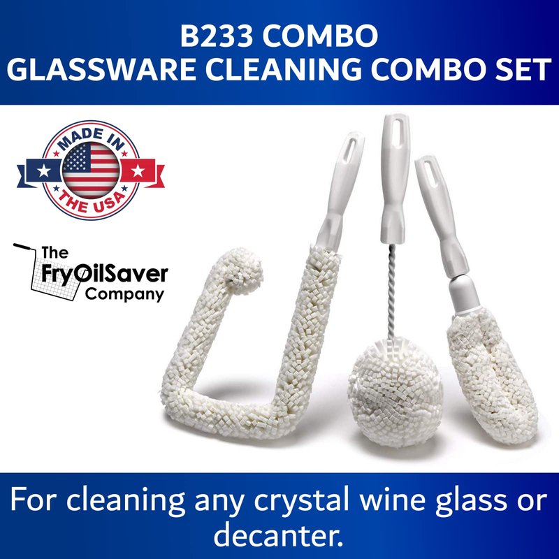 Glassware Cleaning Brush Kit Pack of 3, Sommeliers Washing Kit, Non-Scratch Cleaning Brush for Wineglass, Bottles, Dish, Essential Glass Cleaner Brush for Restaurants and Bars by The FryOilSaver Co.