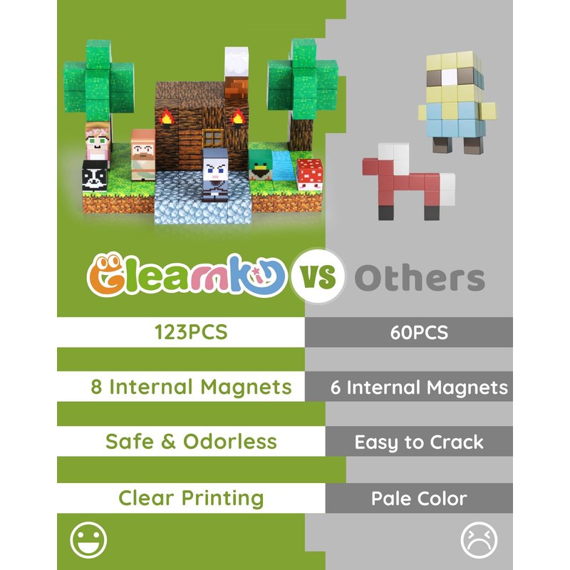 - Safe & Sturdy Construction: Gleamkid magnetic blocks come with 8 internal magnets for enhanced stability and flexibility. Made from high-quality ABS material with sealed edges and a durable design, these blocks are safe.