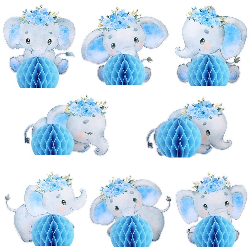 - Elephant Party Decorations: you will get 8 pieces of elephant honeycomb centerpieces in 8 different styles, enough quantity and styles to meet your party needs, adorable design can create a lively party atmosphere; The blue color makes the fun design stand out, offering a suitable presentation that's sure to attract attention