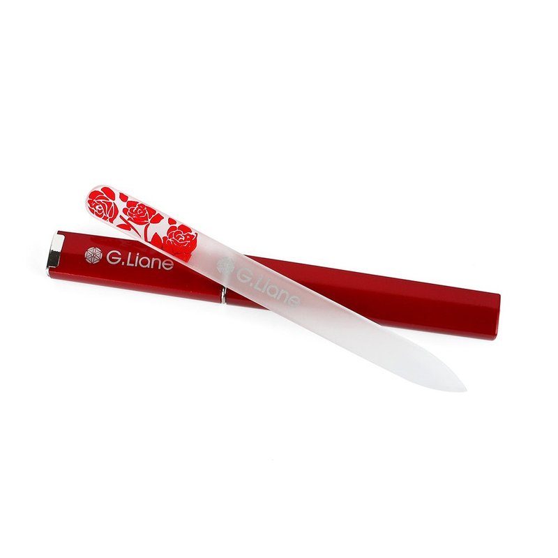G.Liane Premium Glass Nail File with Case Professional Crystal Fingernail Files Perfect Manicure Set for Women Men Kids Nail Care Gift Set(Rose Red)
