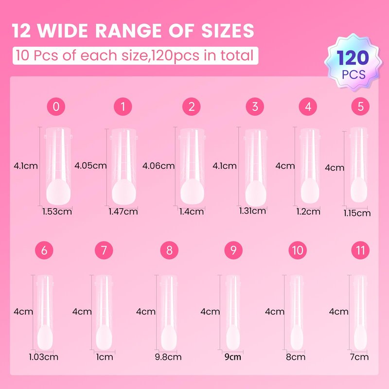 - 12 VARIED SIZES: This polygel nail extension mold kit comes in 12 different sizes, ensuring a perfect fit for most toenail beds. With its flexible material, you'll easily find a size that suits your toes. The 12 sizes are neatly stored in a compact box with individual compartments, keeping everything well-organized and mess-free.